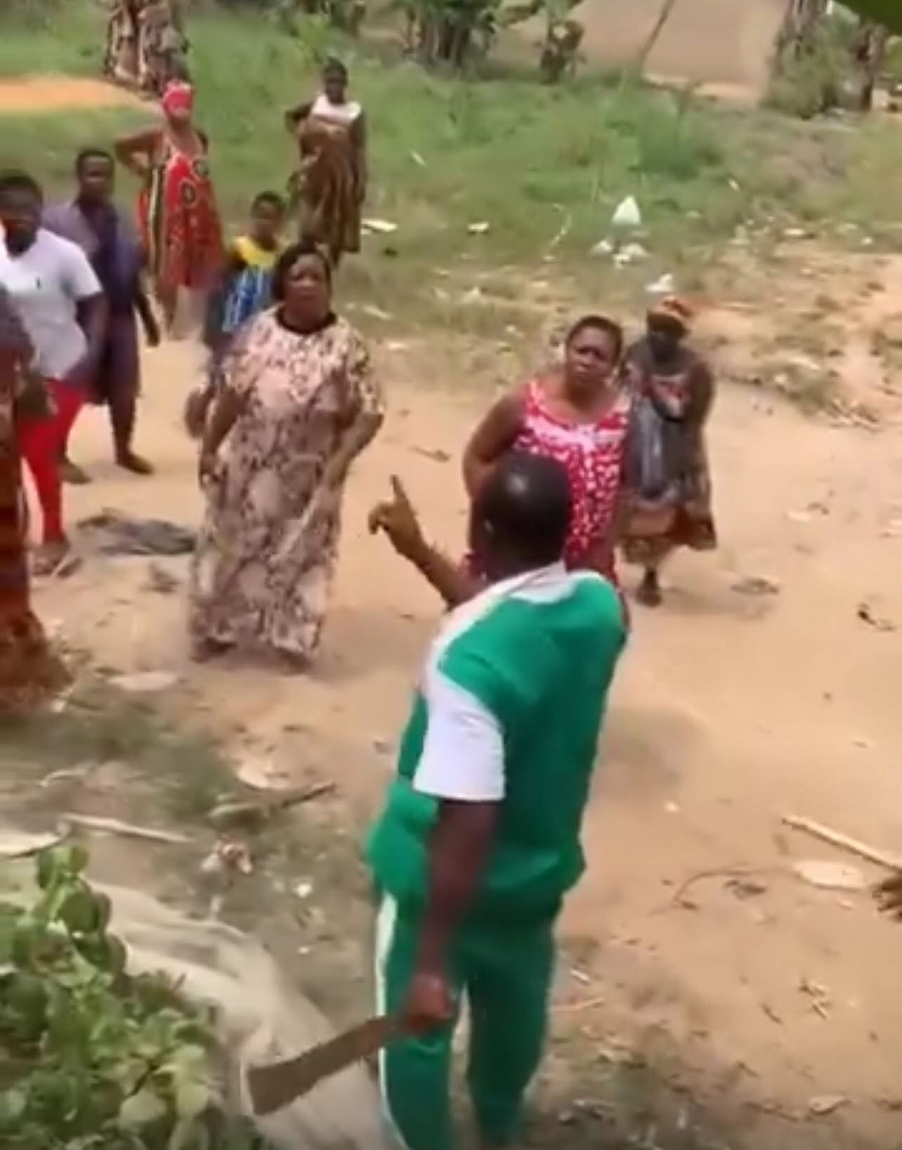A video making the rounds online shows him trying to defend himself with a machete.