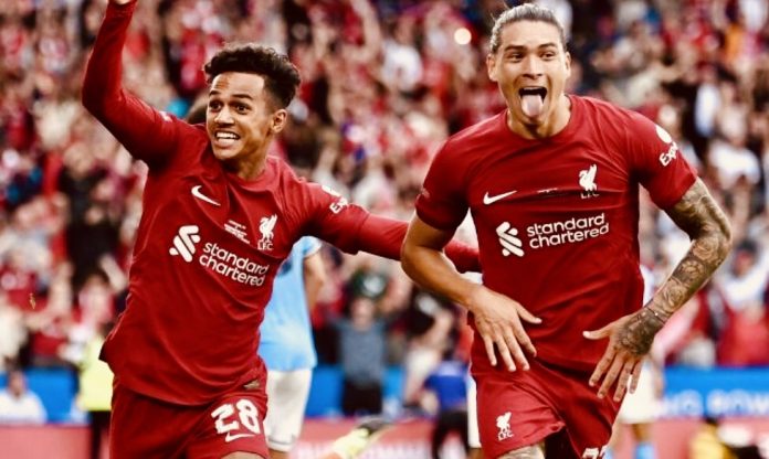 New summer signing, Darwin Nunez extended Liverpool’s lead by heading in his first goal for the club  from close range.